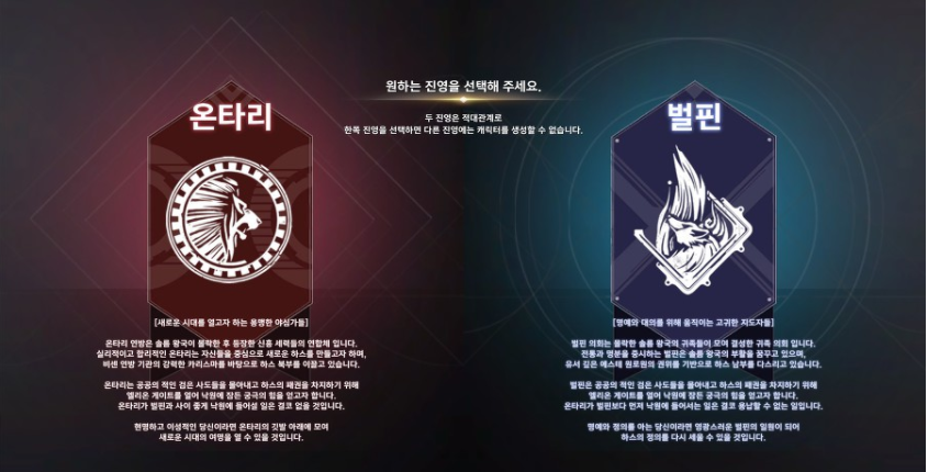 이 진영은 게임 계정당 한번만 선택이 가능하며